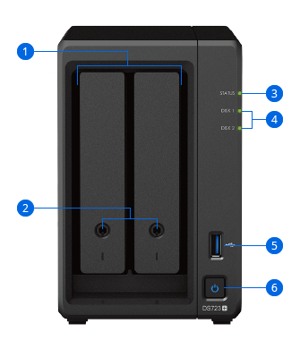 | Thiết bị lưu trữ mạng Synology DS723+ 2-bay DiskStation (up to 7-bay), AMD Ryzen R1600 , 2GB ECC DDR4 SO-DIMM expandable up to 32 GB, 3Y WTY_DS723+ |